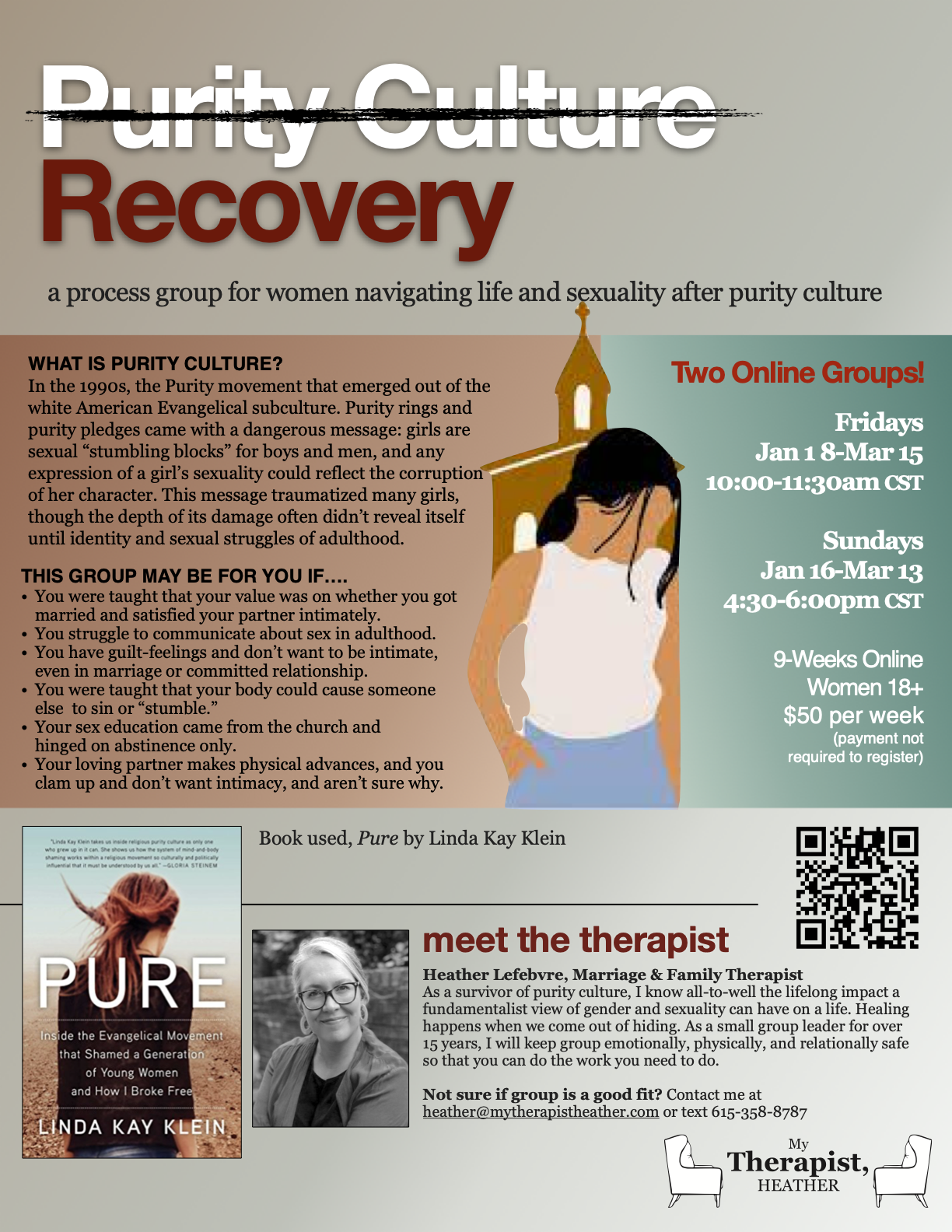 If you are interested in joining one of the Purity Culture Recovery trauma process groups starting January 2026 please complete the form below, and I’ll be in touch within 2-3 days to schedule a call.